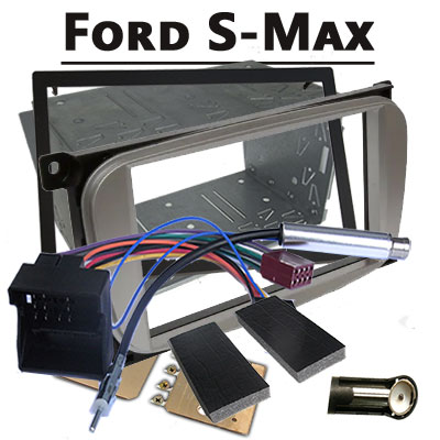 Ford S-Max Doppel-DIN Radioblende Einbauset Silber Oval Ford S-Max Doppel-DIN Radioblende Einbauset Silber (2006-2010): Passgenaue Blende, Radioadapter mit Antennenadapter und Phantomspeisung, einfache Installation für ovale Werksradios.AA63017